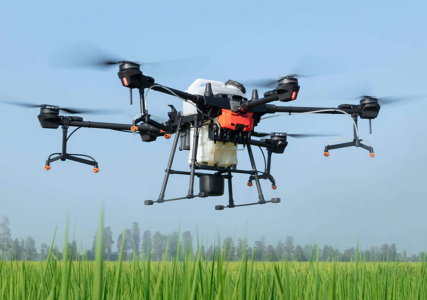 Agras T20 has a payload of 20 Liters and has a spray width of 7 Meters. This makes the process much more efficient.